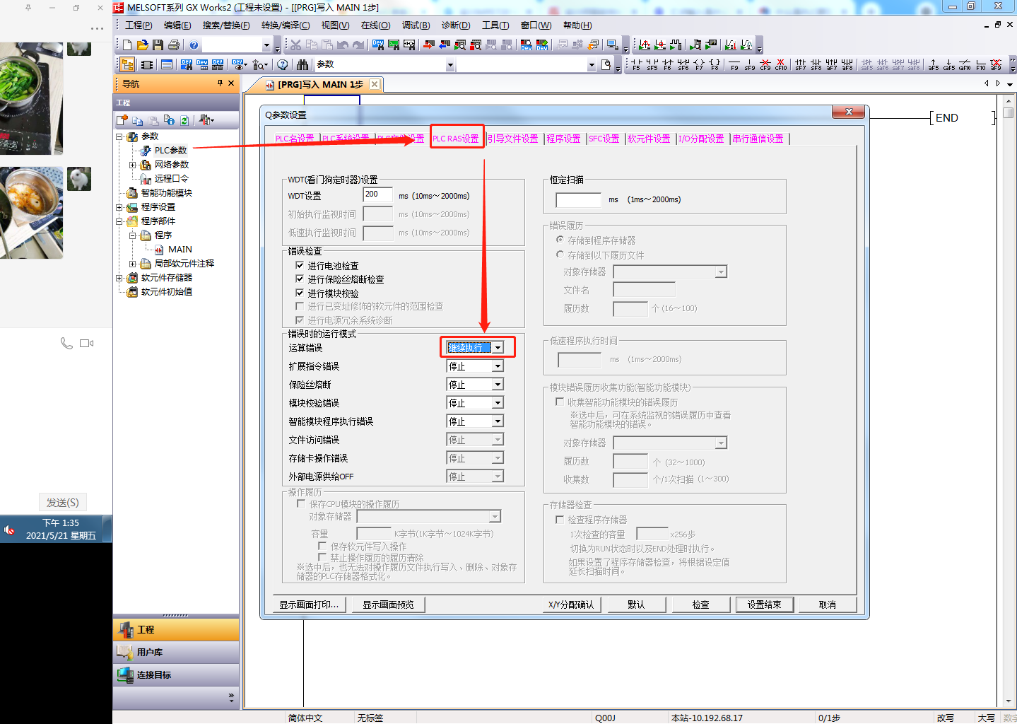 點(diǎn)PLC參數(shù),點(diǎn)PLC RAS設(shè)置,找左下角:錯(cuò)誤時(shí)的運(yùn)行模式,第一項(xiàng),運(yùn)行錯(cuò)誤   選擇繼續(xù)-----執(zhí)行,完畢。