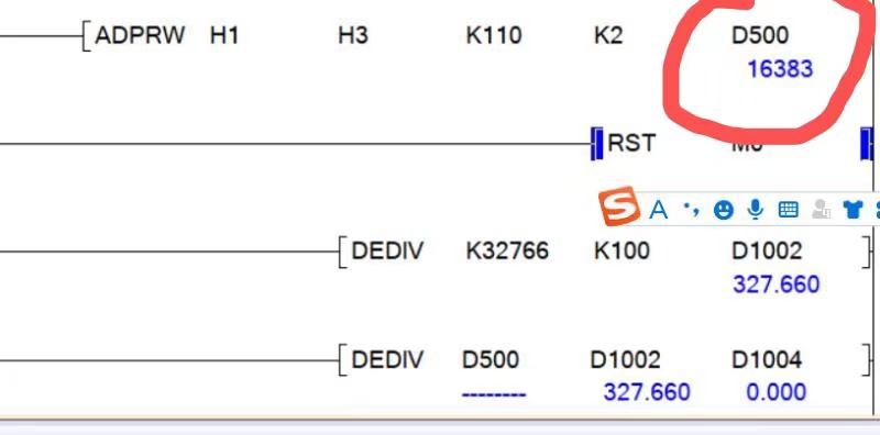 用一個轉換指令,D500是DW數據類型,DEDIV是FLOT數據類型