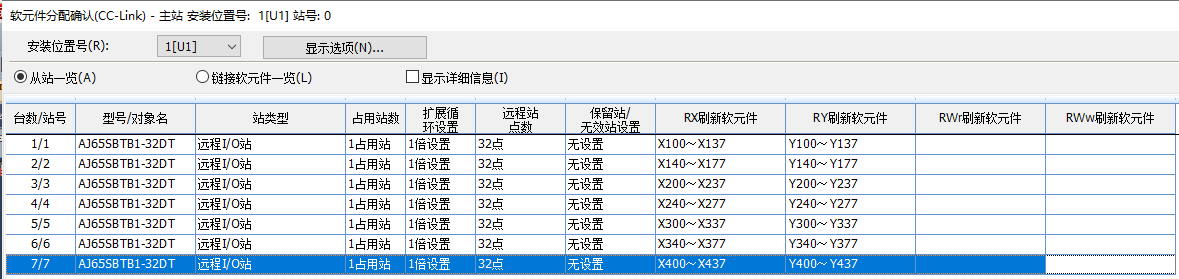 遠(yuǎn)程IO16輸入16輸出共7站。分配PLC起始地址為X100和Y100。模塊還沒有到要先寫程序,但不知道第一個(gè)模塊對(duì)應(yīng)地址是不是X100-X117,Y120-137還是X100-117,Y100-Y117.第二模塊的地址是多少開始呢,知道的大俠指點(diǎn)一下,省得后面要改動(dòng)太多謝謝