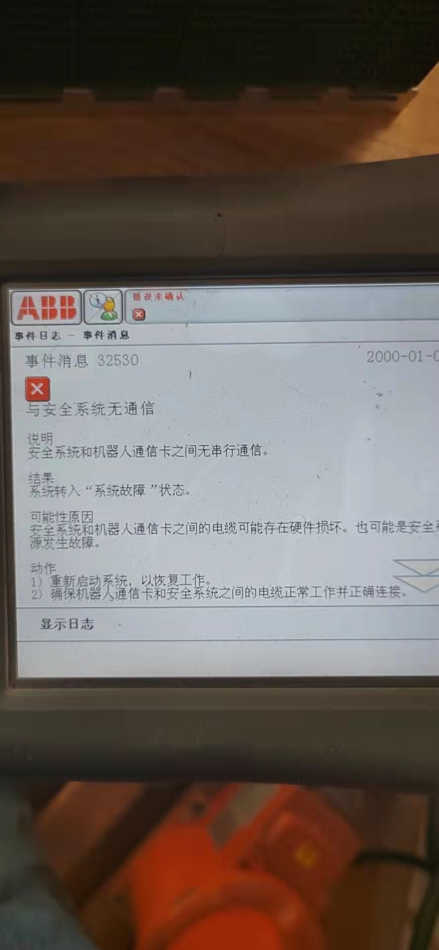 安全板DSQC400,在機柜內,沒動過接線。今天拆開柜子,線也查了一遍,沒看到哪里有問題。