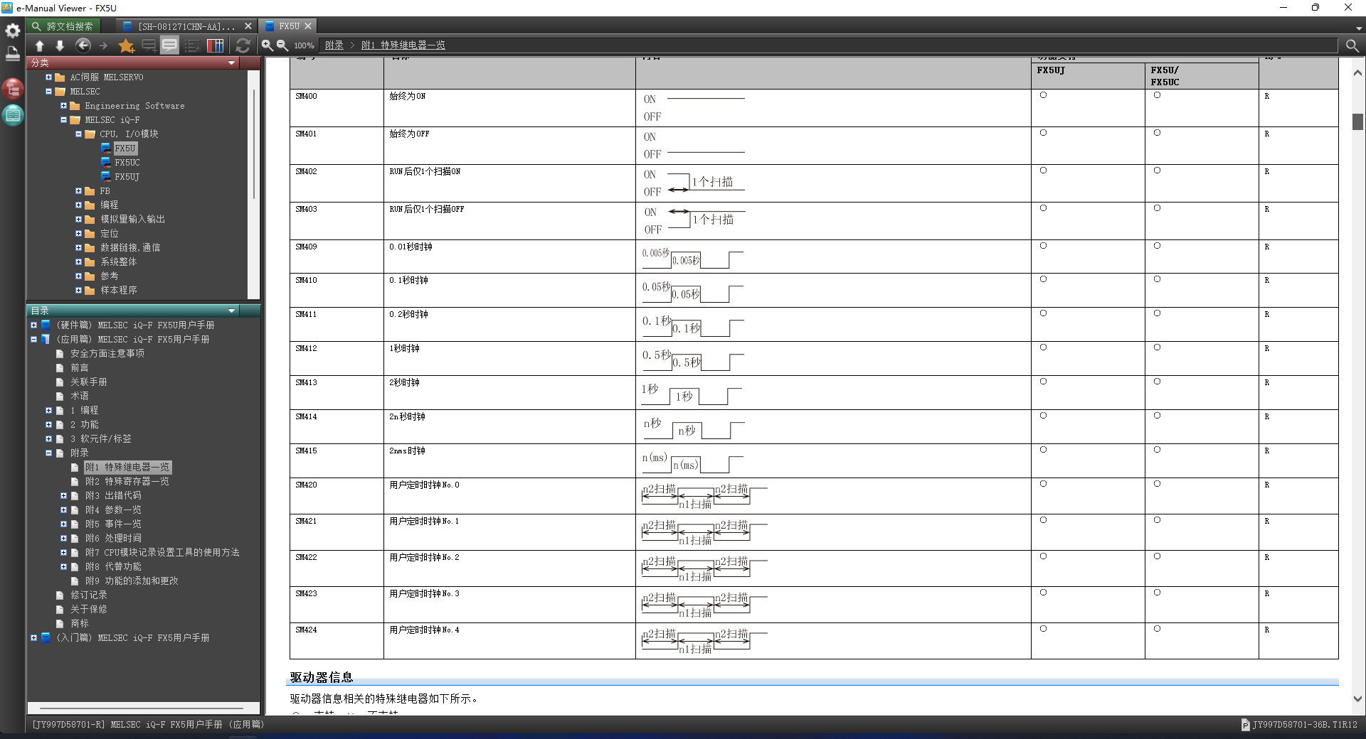 引用引用樓主562981555于2021-11-03 15:57發表的 關于FX5U程序編寫問題 :FX3U常on是M8000,FX5U是SM400,誰有FX5U軟元件手冊可以分享下么,都不知道5U怎么用,感覺跟3U差別太大了