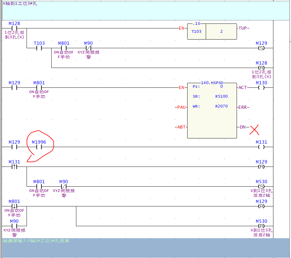 引用引用第1樓hzydlzp于2021-11-26 13:49發(fā)表的 :發(fā)程序看看,用M1996,M1997,M1998,M1999,分別是0-3PSO完成FUN 140最后一步時(shí)ON,不要用DN觸發(fā)下一步