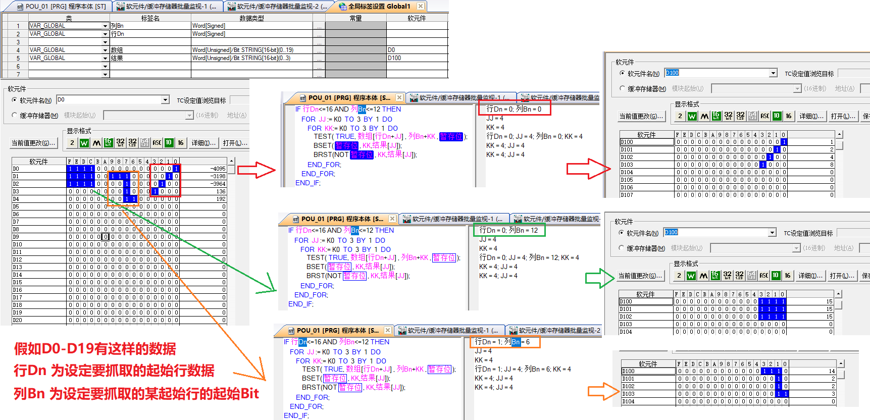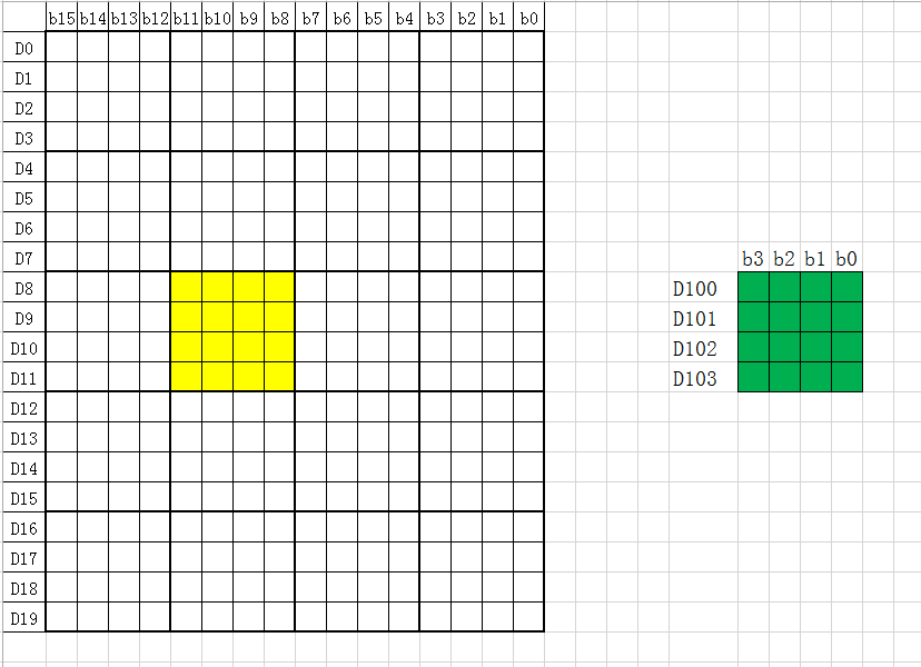 怎么把圖左邊的任一大格(16小格)數據傳到右邊D100-D103中?