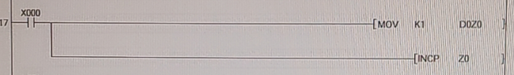 D0Z0的意思,就是地址在D0的基礎(chǔ)上加上Z0的數(shù)值,比如Z0是0,D0Z0就是D(0+0)=D0,Z0是2,D0Z0=D(0+2)=D2, 如果D0Z0變成D100Z0,就是D(100+Z0的值), incp z0 是當(dāng)X0接通執(zhí)行時(shí)z0當(dāng)前值加上1,比如Z0當(dāng)前值是0,執(zhí)行后z0就變成1了; 這個程序正常后面還有一個判斷語句,當(dāng)Z0超過多大值時(shí)就將z0的數(shù)值歸零; |
