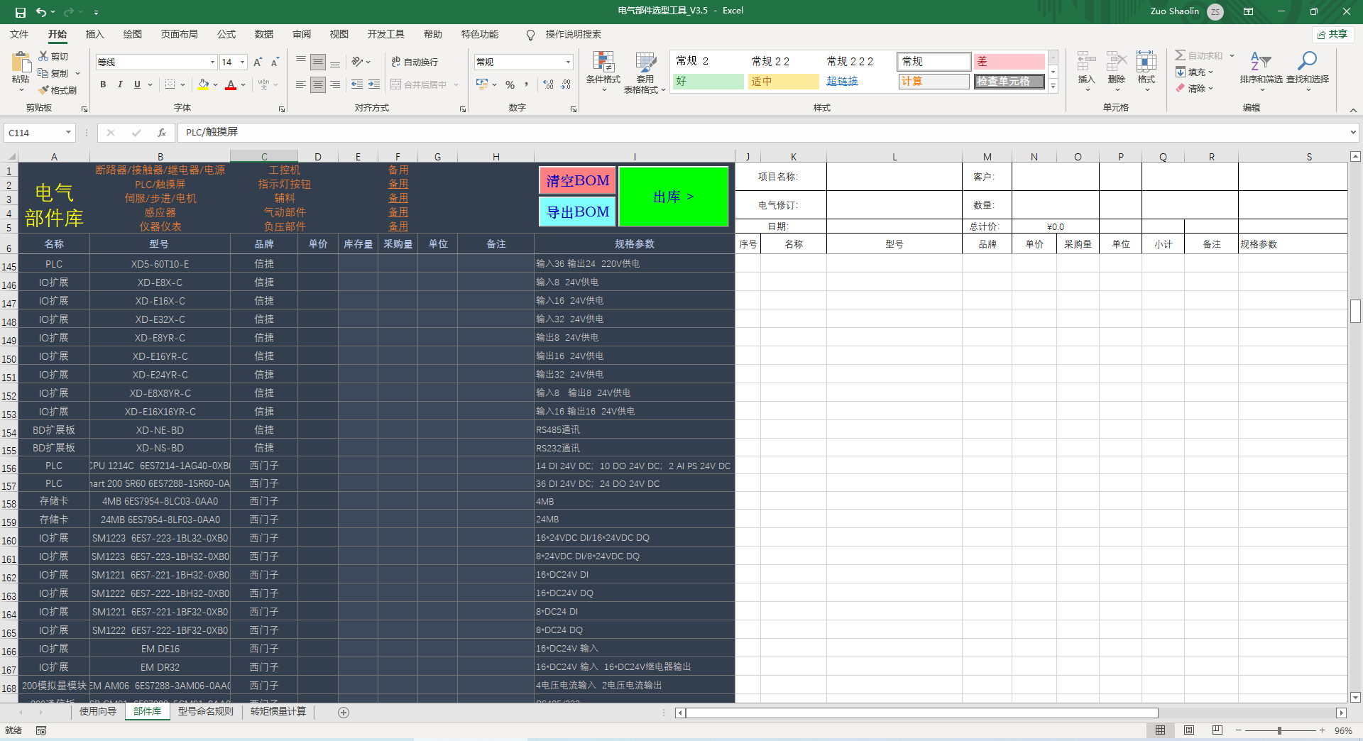 本人基于Excel開發的一個硬件選型一鍵出BOM的工具,麻雀雖小五臟俱全,里面收錄了幾百種常用的電氣元器件,可以一鍵硬件選型,一鍵生成BOM清單,BOM計價 伺服步進電機轉矩慣量計算,等方便實用功能,選型出BOM事半功倍,強烈推薦