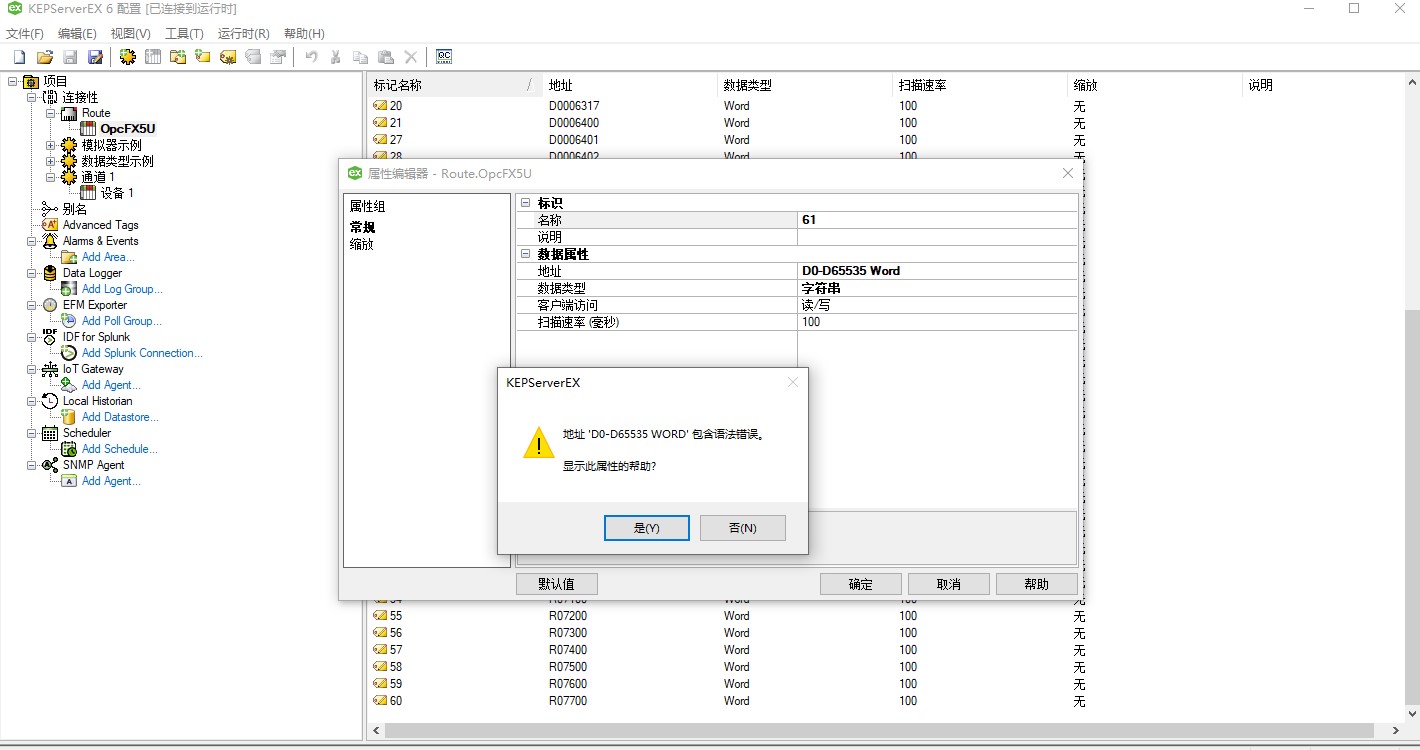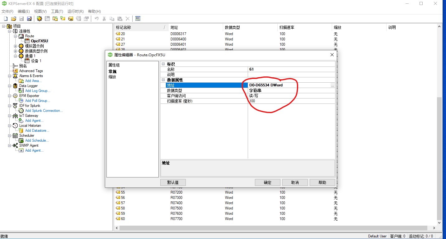 KEPServerEX 6 讀取多個寄存器 我有一個二維碼數據占了8個寄存器用KEPServerEX 6 去讀取數據類型為字符串總是保存如何一次性從D0讀到D8