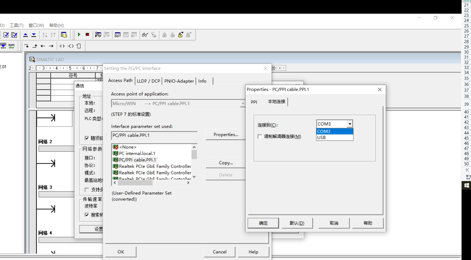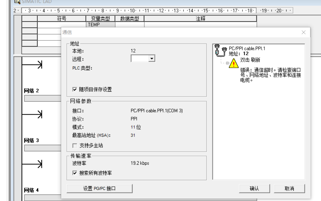 設(shè)置PPI通訊,西門子通訊不是485的,需要USB轉(zhuǎn)PPI通訊線。