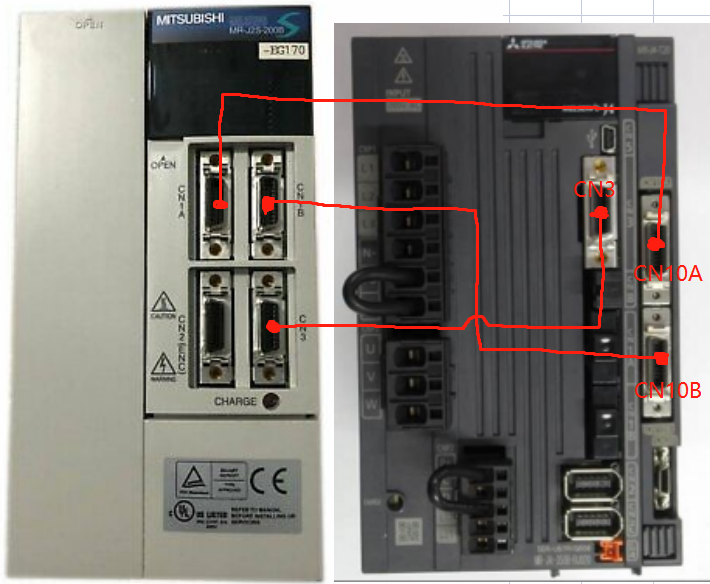 只更換了驅動器,馬達沒有更換也沒有動過,用的還是原來的,編碼器線是定做的一根線,直接和J4那個編碼器插頭對應的,不是用的轉接頭。