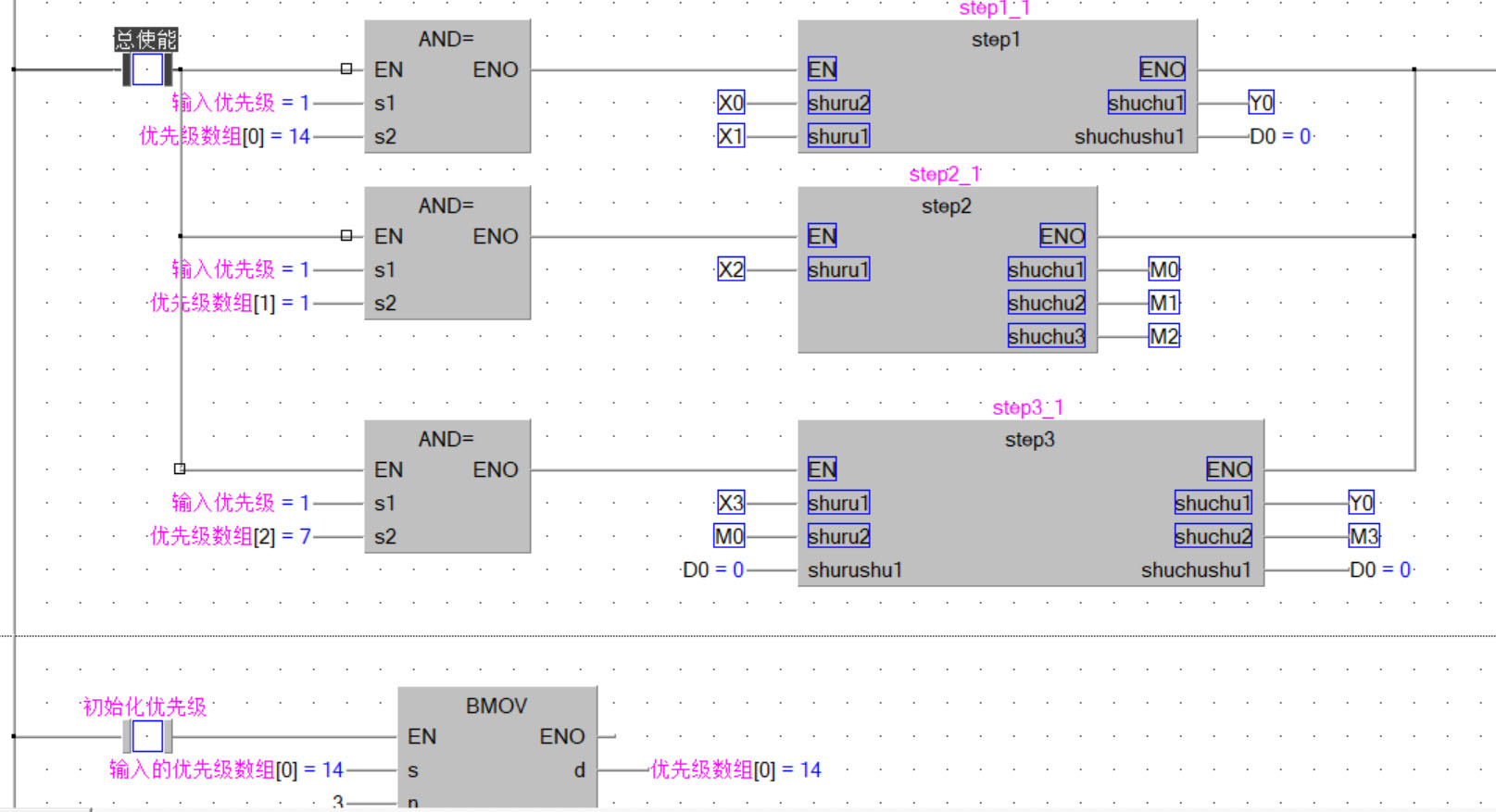 用數(shù)組綁定功能塊的使能,用冒泡算法排序,再之后就按數(shù)組順序使能功能塊