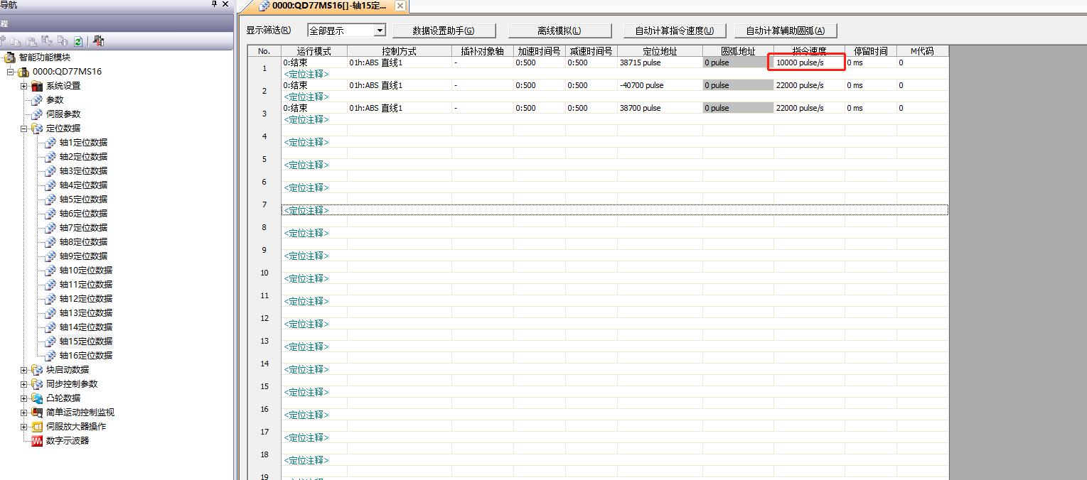 1.讀出了定位參數,發現確實寫進去了。2.在程序中讀出U0\G20004,發現也是K10000。3.剩下兩個位置單獨修改速度是有用的