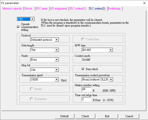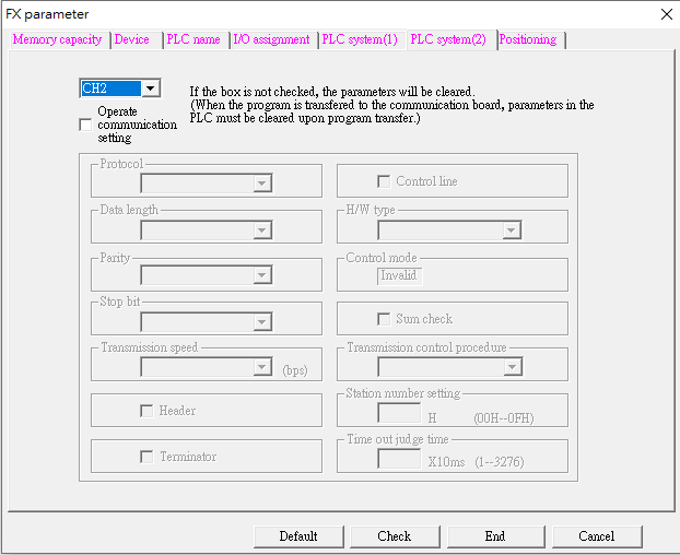 故希望可由485ADP進行程式編程,依手冊指引進行PLC parameter-PLC system(2)