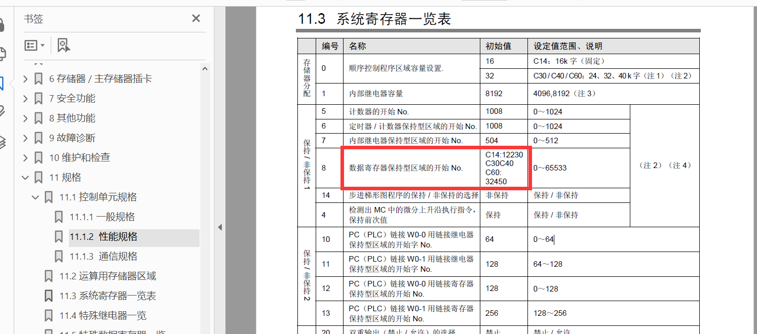 C40,C60 數據保存型寄存器開始地址 DT32450(不加電池) 用戶手冊上有的