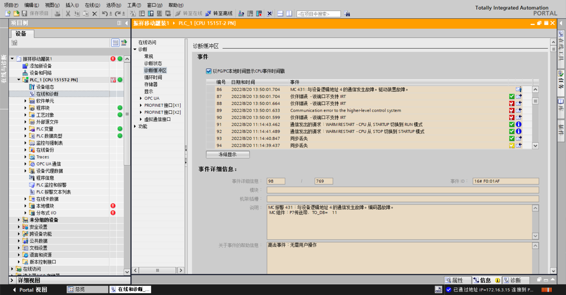 接收了別人做的設(shè)備,基本沒(méi)怎么動(dòng)組態(tài)與流程方面的程序,但最近這個(gè)匯川軸老是在報(bào)錯(cuò),有時(shí)候順帶這V90伺服也會(huì)報(bào)錯(cuò)。