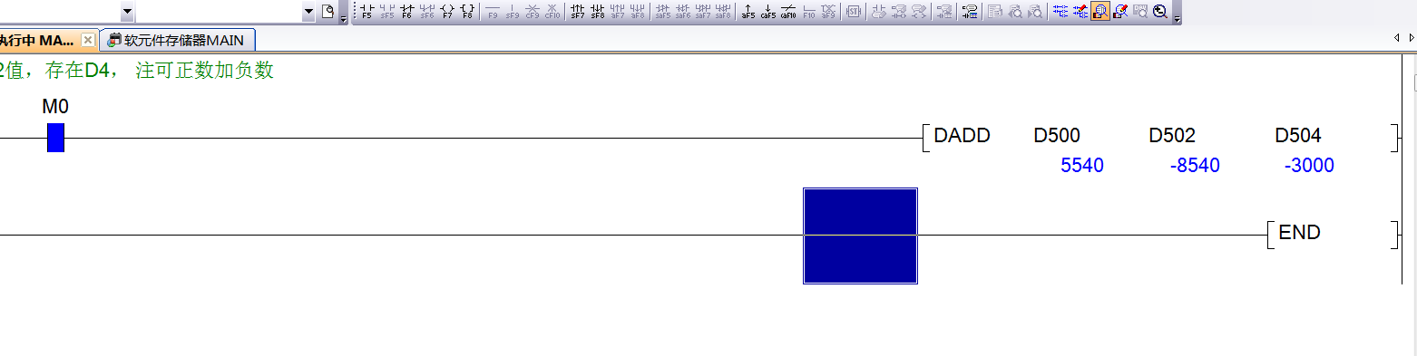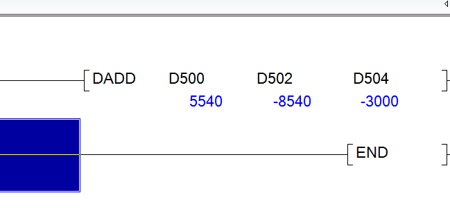 三菱DADD32位加法,為何在寄存器輸入數(shù)值時(負數(shù)如-8540),還要在D寄存器高位寫入-1(負1)  ,這樣寫入PLC的值顯示才對,如不寫-1輸入PLC的值就會不一樣,而ADD16位就不用這樣寫-1,可直接輸入負數(shù),是不是我輸入方法不對,還是程序不對。