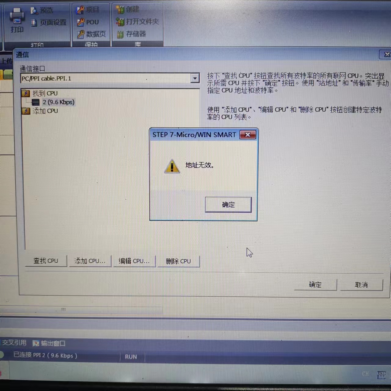 如題,求助各位大神!西門子S7-200 CN 主機使用STP7-Micro/WIN SMART通訊上傳程序聯機時能正常找到CPU,點擊確定后出現“地址無效“報警。煩請知道的兄弟指點一下時怎么回事?要怎么解決呢?謝謝!