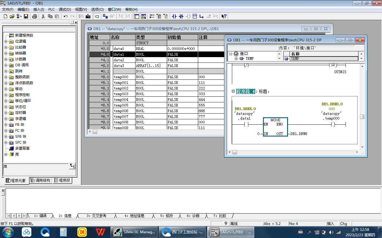 我在STEP7 中創建了DB1,并且在里面定義了1個int元素,也給這個元素加注釋了,也在符號表中添加了比如  abc  DB1 DB1的符號。