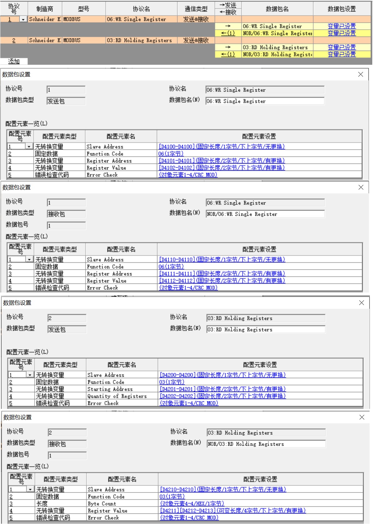 感謝指導!按照你的示例,是把各從站需要變更的站號、數據那些放到前面通過定時或者結束標志進行輪流MOV到協議設定對應的地址是吧?還是說每個從站讀或者寫都要單獨設定一個協議來區分地址,比如2個站的變頻器需要寫頻率,1個站的溫控器需要讀、寫PV和SV,正常是1個03和1個06功能碼協議,通過預先變更地址內容,還是說全部獨立,做3個06和1個03功能碼協議呢?
