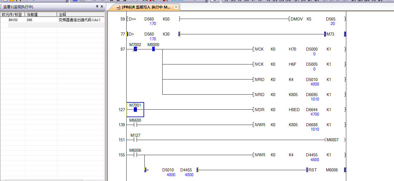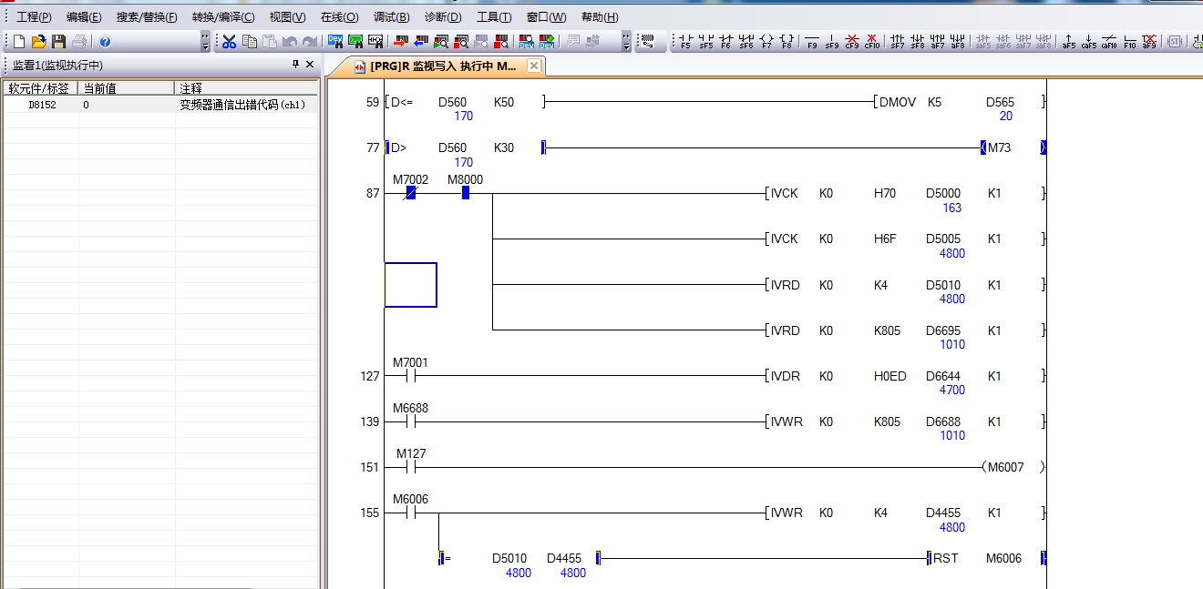 請問諸位師傅,三菱FX3U一485BD跟三菱變頻器485通信,折騰了幾年,都還沒有整透,現在能讀取到運行頻率,能讀取到參數,例如Pr.4高速頻率,能讀取Pr805力矩限制,寫Pr.4高速頻率也能寫進去,用HED代碼寫設定頻率RAM就不行,用寫Pr.4的去寫Pr.805又不行,看說明書發現這行字不好理解(請參照命令代碼 (FR-E800 使用手冊 (功能篇)),根據需要進行寫入、讀