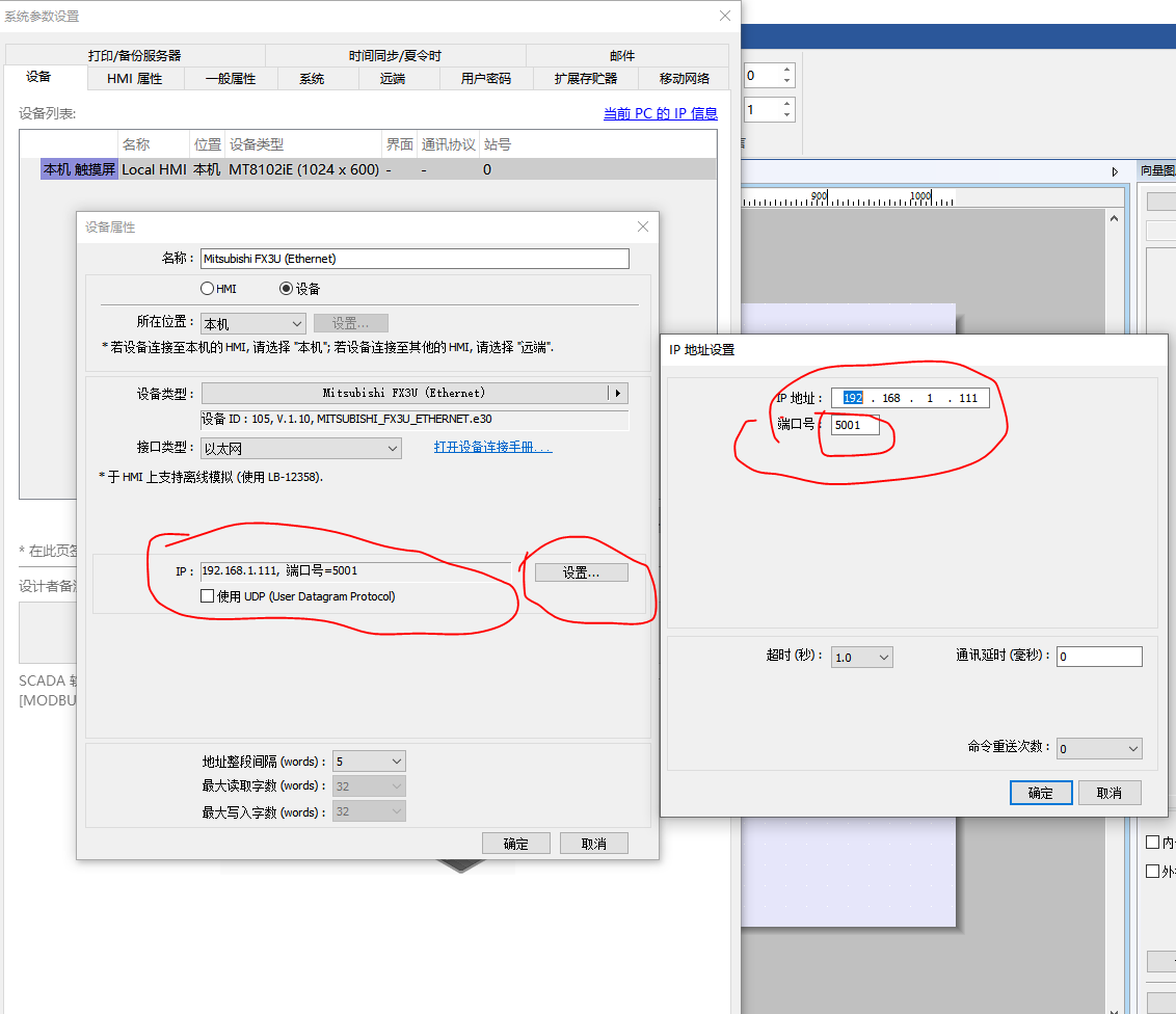 各位大師:現(xiàn)用一臺(tái)PLC(帶網(wǎng)口)與2臺(tái)威綸通屏(帶網(wǎng)口)通信,3臺(tái)設(shè)備的IP設(shè)置在同一個(gè)網(wǎng)段(PLC:192.168.1.5 /A屏:192.168.1.2 /B屏:192.168.1.3) 。通信過程中2個(gè)觸摸屏經(jīng)常會(huì)彈出畫面"Device No Response"設(shè)備無響應(yīng)的對(duì)話框。請(qǐng)教各位是不是觸摸屏的系統(tǒng)設(shè)置中還有哪些沒有設(shè)置正確?