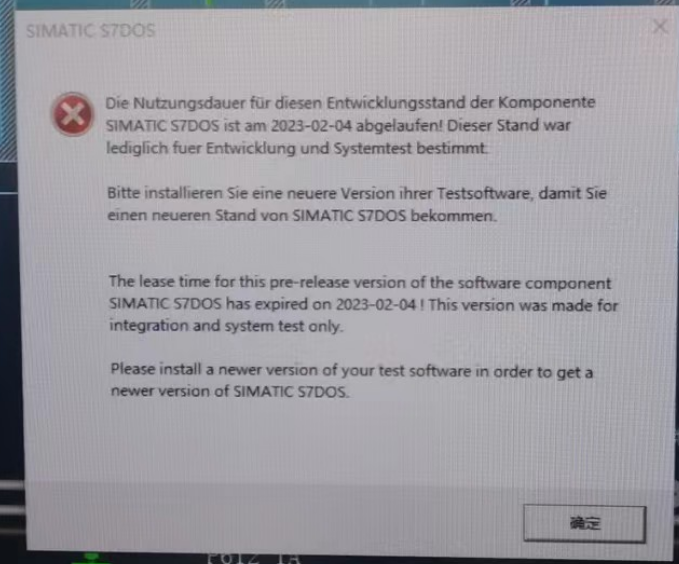 此軟件組件SIMATICS7DOS的預(yù)發(fā)布版本的租賃時(shí)間已于2023-02-04到期!此版本僅用于集成和系統(tǒng)測(cè)試