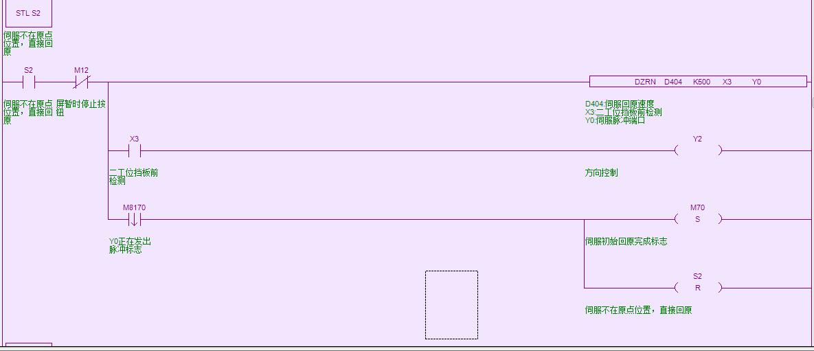 一個近點信號X3,開機檢測X3如果ON向前走一段,在回原,如果X3OFF直接回原,檢測到近點開關改變方向,X3下降沿停止,原點檢測完成