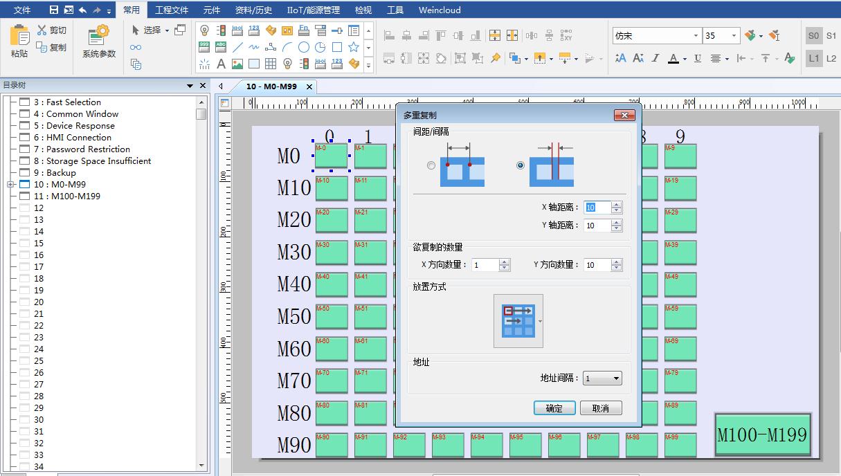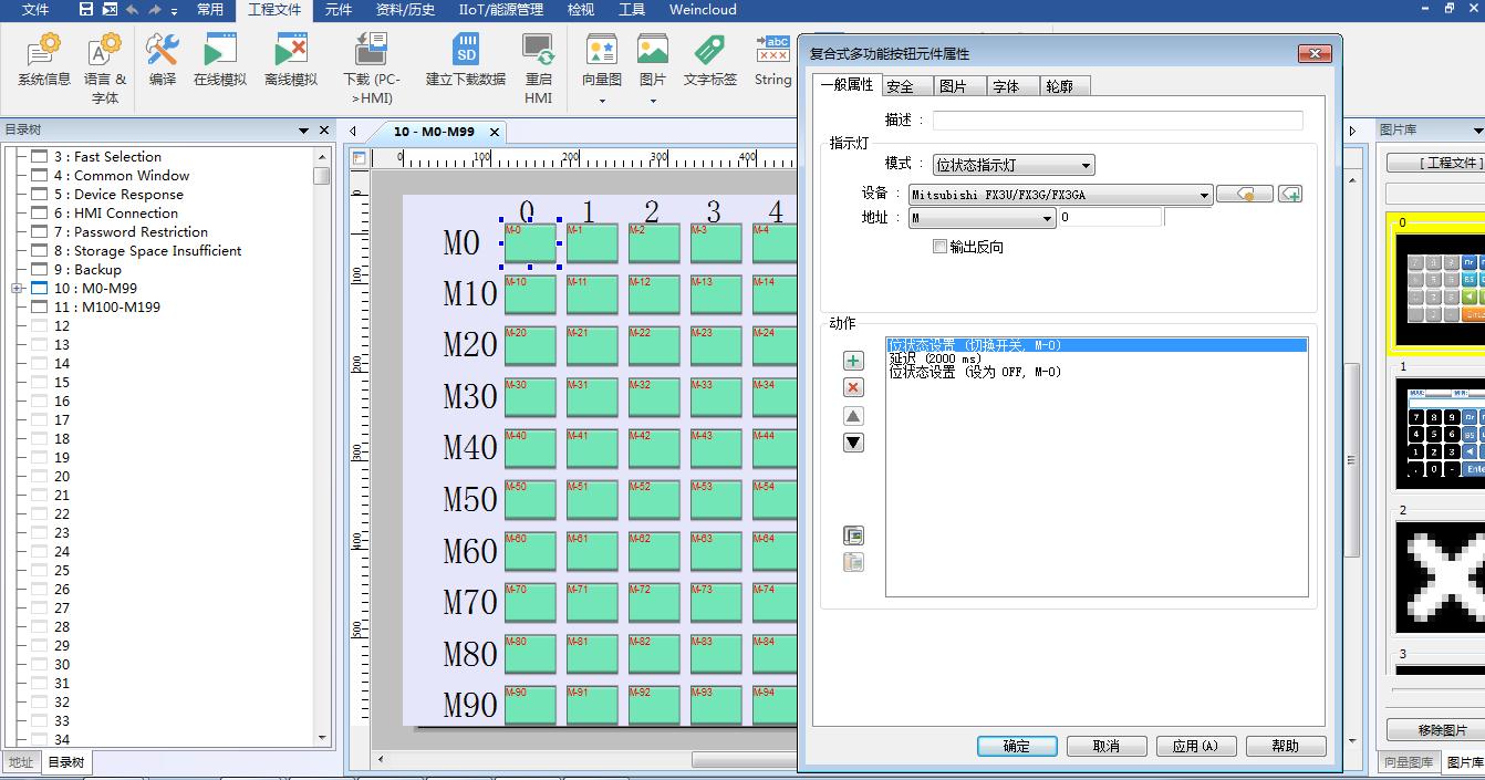 利用威綸通觸摸屏的(復合多功能按鈕)可以輕松實現(xiàn)你說的這個功能,先做一個按鈕,然后批量復制,你想做多少個都沒有問題,而且不可用考慮占用PLC的掃描周期