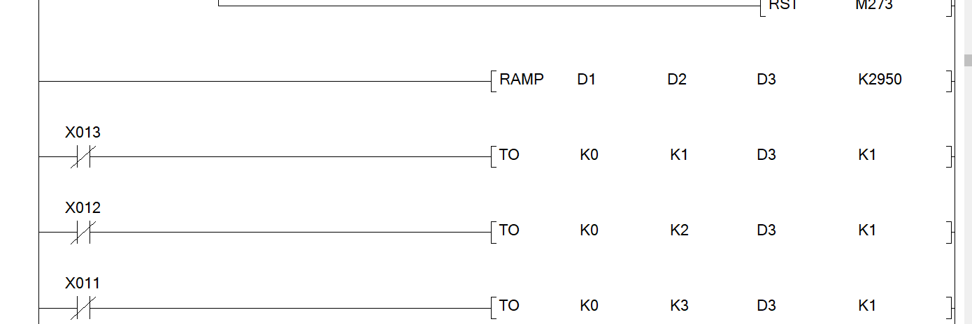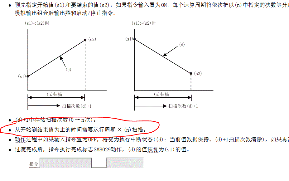 我以前用過這個指令控制液壓缸的速度,原理是這樣的:當液壓剛開啟時要求速度緩慢上升,一段時間或行程后全速,到最后一段行進距離時又緩慢降速度直到感應到到位信號停止。PLC用模擬量輸出控制比例閥放大器,放大器再驅動比例閥工作控制給到液壓缸的流量達到控制液壓缸行進的速度(相當于中間繼電器的作用),因為PLC模擬量輸出模塊的驅動能力有限,所以中間加了個比例閥放大器。