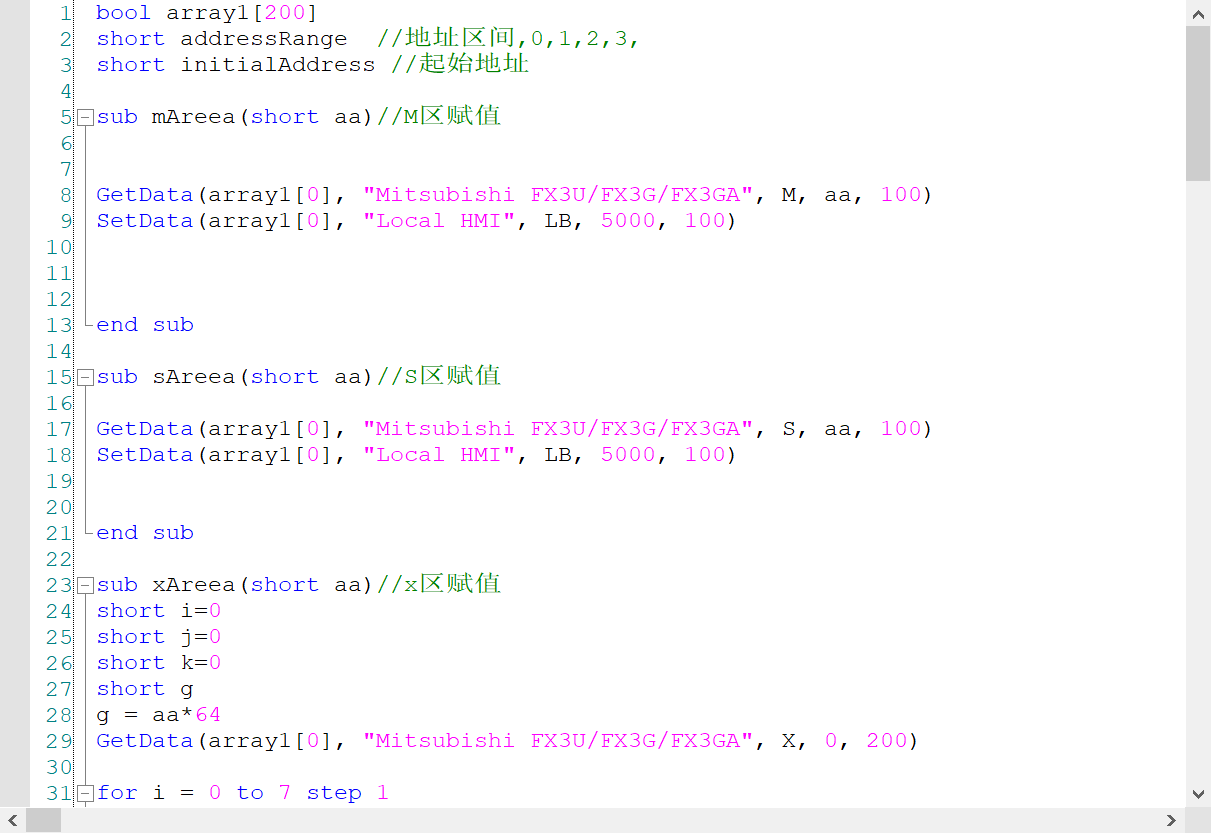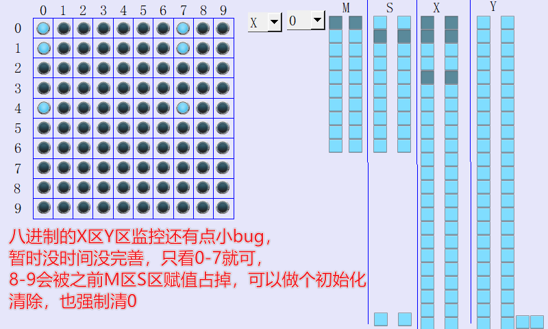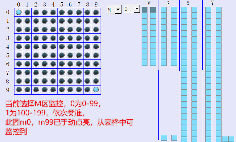 因為工作的時候,看別人寫的程序,用M做流程,還跳來跳去,有些PLC監控還只顯示on和OFF,找起來太費眼,因此花了點時間用宏做個監控頁,此觸摸屏程序做了常用的地址區間,可以自己增加,M區只監控到m0-m999,s0-s999,八進制的x和y,監控200個點,十進制的xy就做的和m s區一樣。效果如圖片顯示