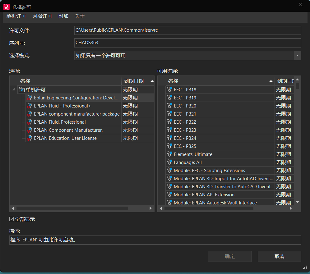 2. Click the "add" button on the bottom right side, search for "2024" in the pop-up dialog box, select all the search results, click "OK", and add EPLAN 2024 authorization
