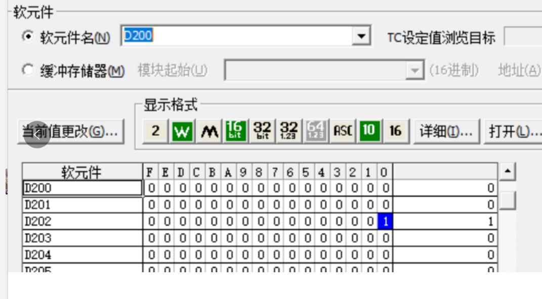 D200是我的控制數據,顯示D200為0,但是201沒有錯誤數據。M201也沒有置位信息。
