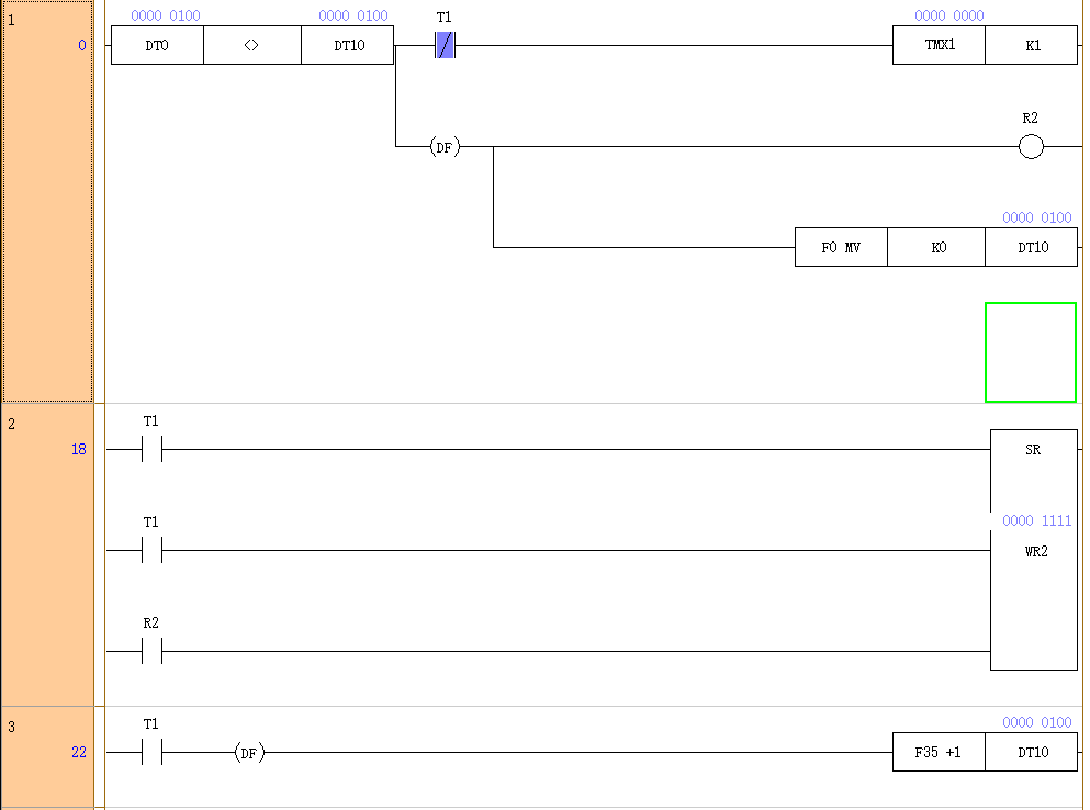 MOV K1 D10     ; 將1存入臨時寄存器D10[[2]]