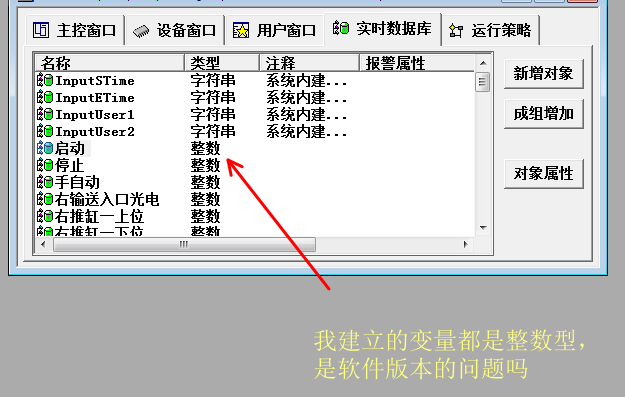 組態I的輸入點,怎么數據類型里,沒有BOOL類型,新建了一個第00位,然后看實時數據庫里變量后面怎么是整數?我把這個變量對應到觸摸屏上也能用,這是為什么呢?我看視頻教程上,I和M在實時數據庫里面的后面是開關量啊。。這是怎么回事?