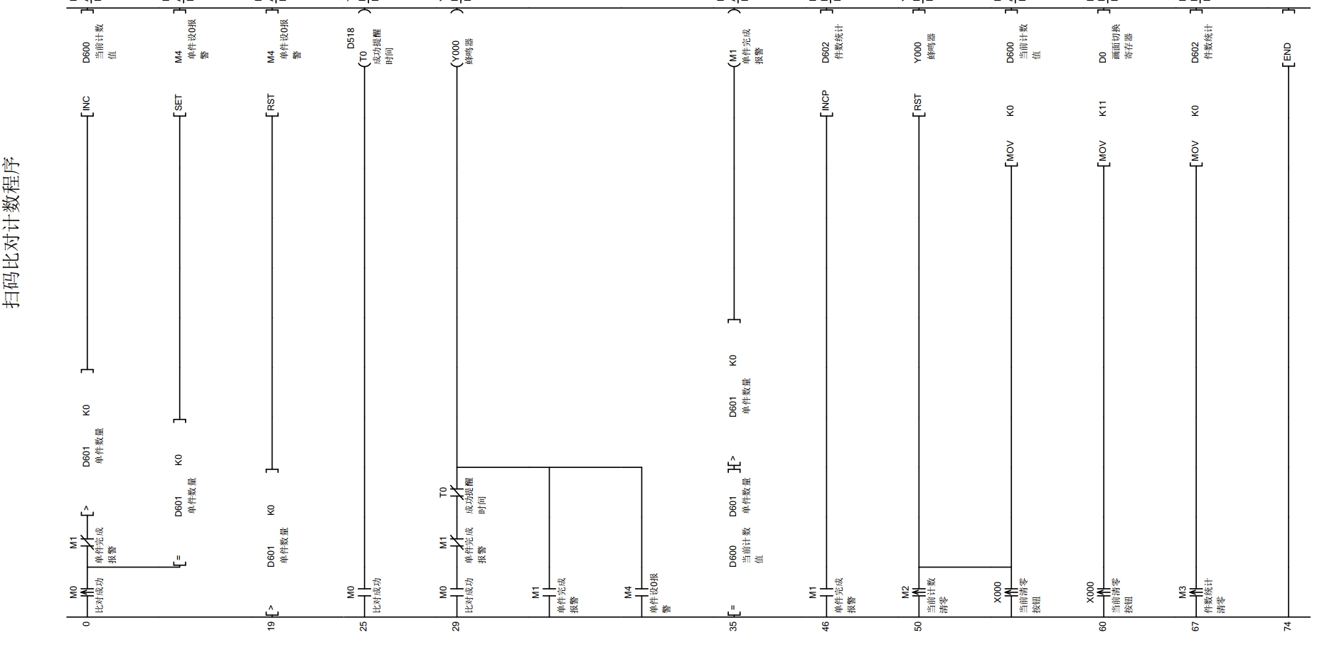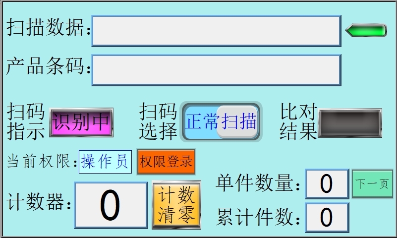 3、效果:員工翻箱復檢產品后,順帶將產品拿至掃碼器下方掃碼計數,識別比對成功后PLC的Y0控制輸出到聲光蜂鳴器。