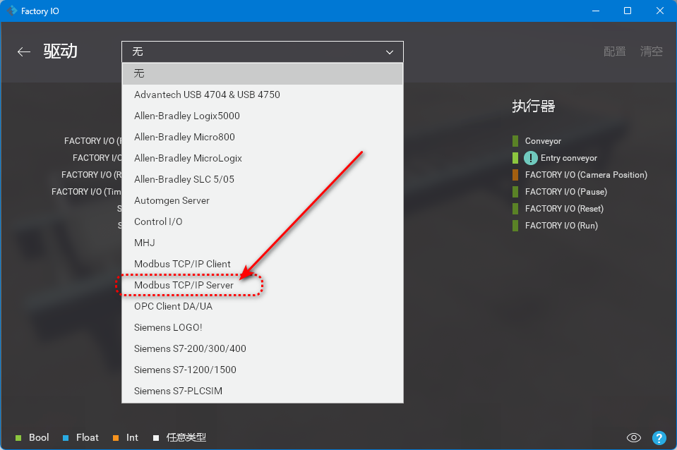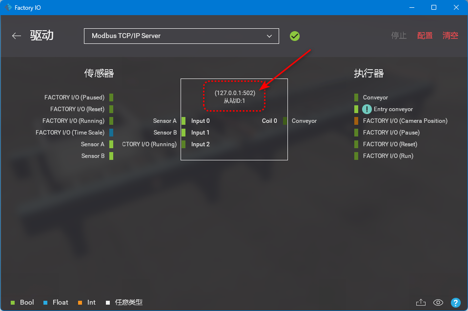 今天在論壇下載了個最新的Factory-IO,測試了一下用ModbusTCP控制