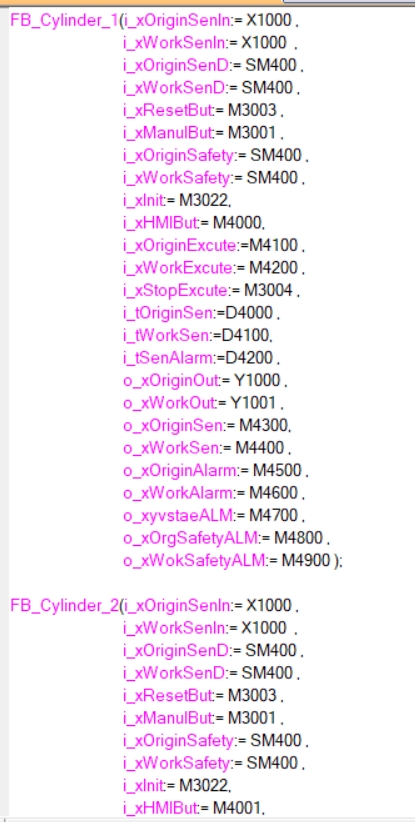 你用FBD實例化一個你的FB塊,你就知道你這引腳定義的多么操蛋了,建議用全局的結構體數組(監控時也方便),既省內存,又方便觸摸屏和程序操作,調用FB建議用FBD,簡潔明了.