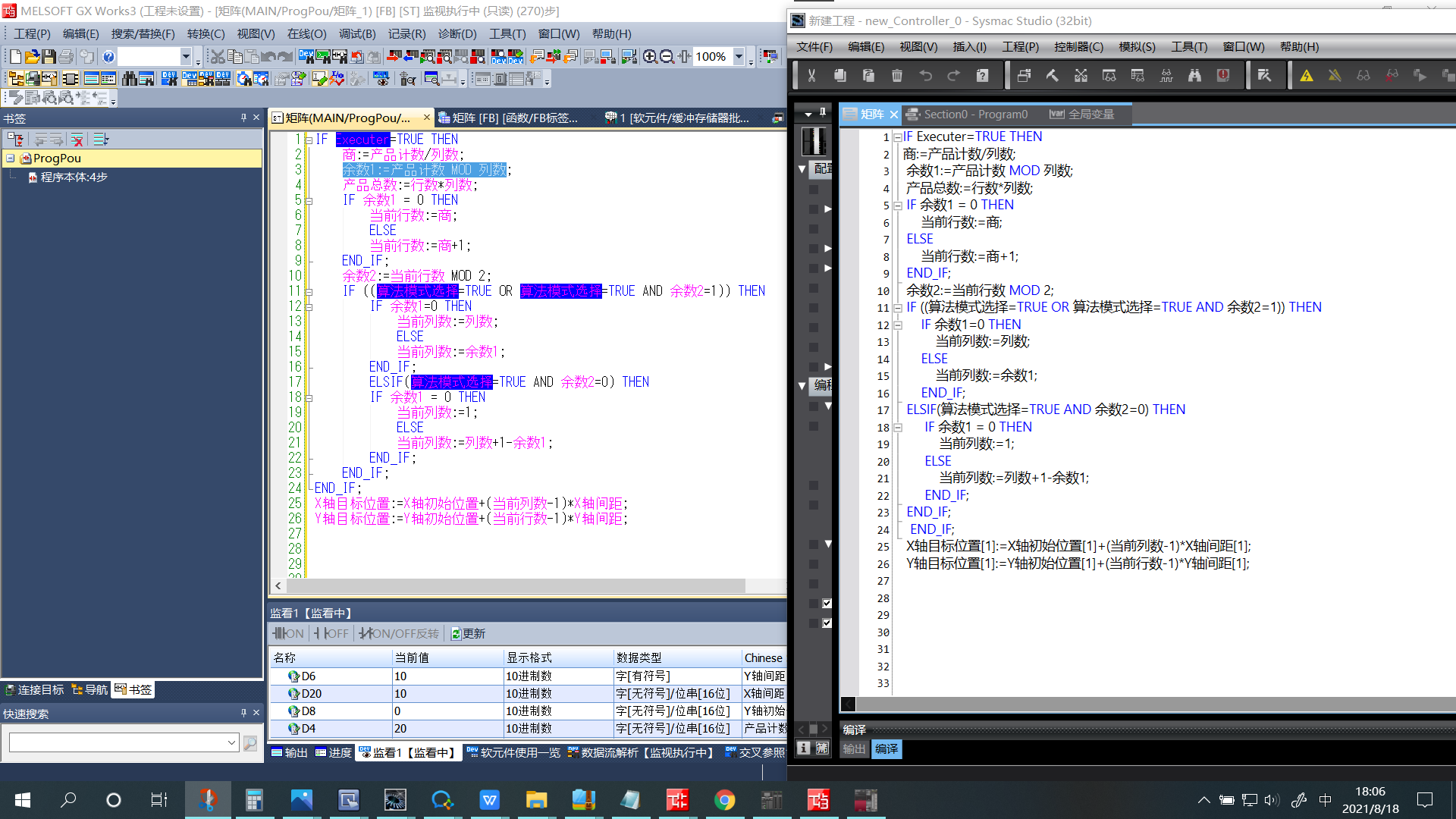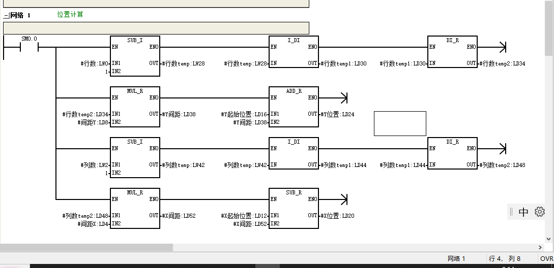 //*************************陣列取料算法*************************************//RTRIG_XY[0](Clk:=S12.Condition[70]);//觸發計數IF RTRIG_XY[0].Q  THEN nstate_XY[0]:=nstate_XY[0]+1;//X計數加1END_IF;IF nstate_XY[0]>=INT#5 THEN//陣列行數遞增 nstate_XY[0]:=INT#0; nstate_XY[1]:=nstate_XY[1]+1;END_IF;IF nstate_XY[1]>=INT#2 THEN//料盤取完標志 nstate_XY[0]:=INT#0; nstate_XY[1]:=INT#0;    S12.Condition[72]:=TRUE;END_IF;