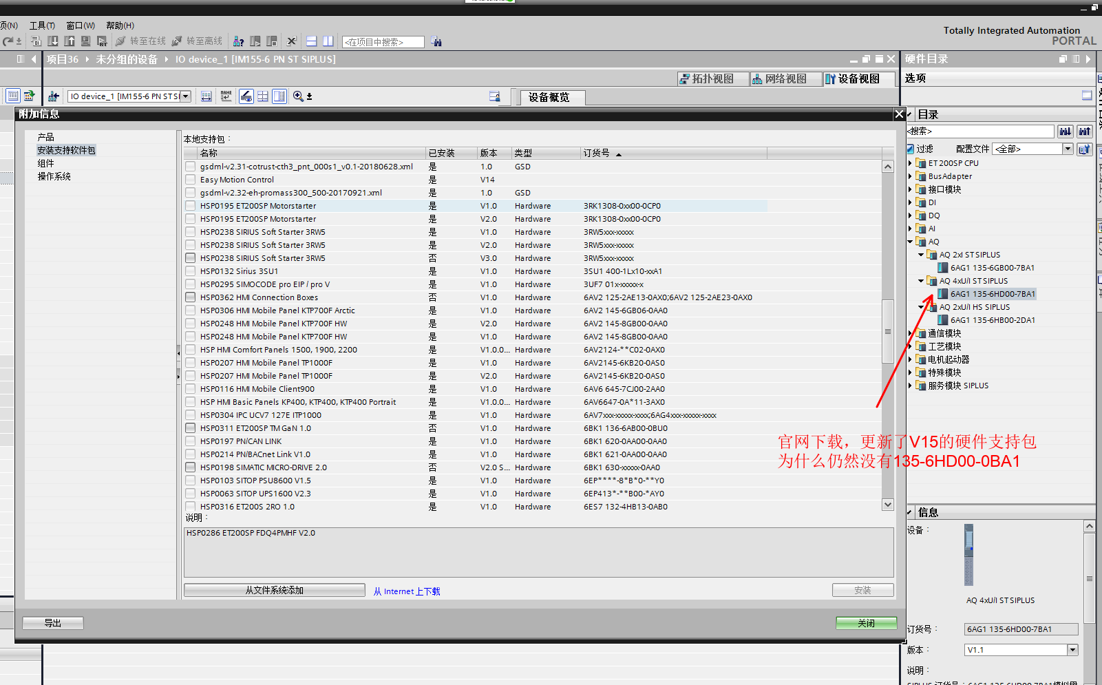 引用引用第1樓guochunyi于2023-12-03 07:36發表的 Re:* 帖子主題:西門子官網更新了硬件支持包,為什么目錄里還是沒有這個 .. :現在公開的版本已經到了19了.用博圖,就要有思想準備:解決辦法就是安裝新版本.