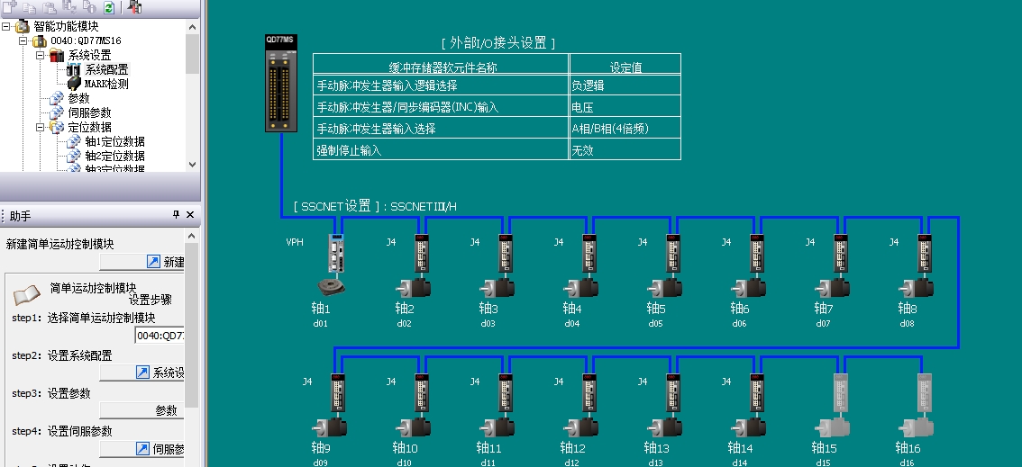 其實,如果單單弄出螺旋線軌跡,我還有第三個方法,這個方法甚至都不要電子凸輪功能,只要求有圓弧插補功能以及手搖脈沖發(fā)生器功能就可以了,LD75模塊就行,根本不用LD77MS 模塊。具體方法如下:X,Y軸做圓弧插補運動的同時,把轉盤編碼器接到手搖脈沖發(fā)生器端子上,作為手搖脈沖發(fā)生器信號控制Z軸伺服,這樣Z軸就會跟隨轉盤角度做垂直方向運動,螺旋軌跡就合成出來了。三菱LD75模塊手搖脈沖發(fā)生器的同步跟隨功能還是不錯的,這種方法編程難度小,效果不會比電子凸輪的方法差多少,非常適合對電子凸輪不熟悉的人。