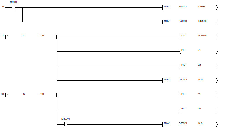 用賦值法做,把輸點用位組合的方式組合起來,再算好開關(guān)位數(shù)據(jù),然后賦值給位組合元件,不同數(shù)據(jù)動不同的氣缸動作。