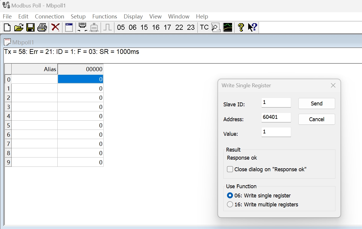 Modbus Poll可以通訊上,設置1跳轉文件1設置3跳轉文件3