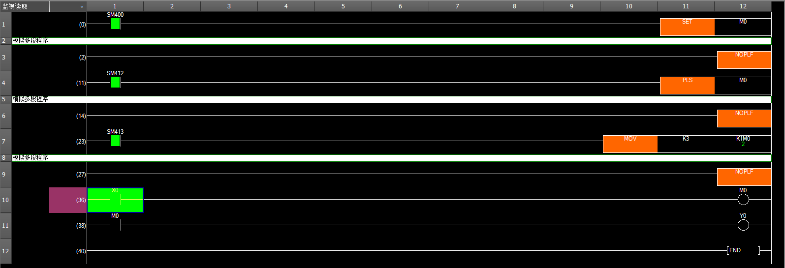 所以上圖的執行結果,Y0的輸出只取決于X0的輸入,和上面的其他邏輯無關