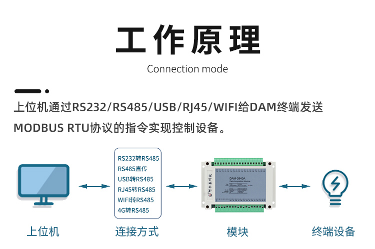 DAM-3028MC為8路隔離數字量輸入,8路C型信號繼電器輸出模塊,RS485通訊接口,帶有標準ModbusRTU協議。配備良好的人機交互界面,使用方便,性能穩定。
