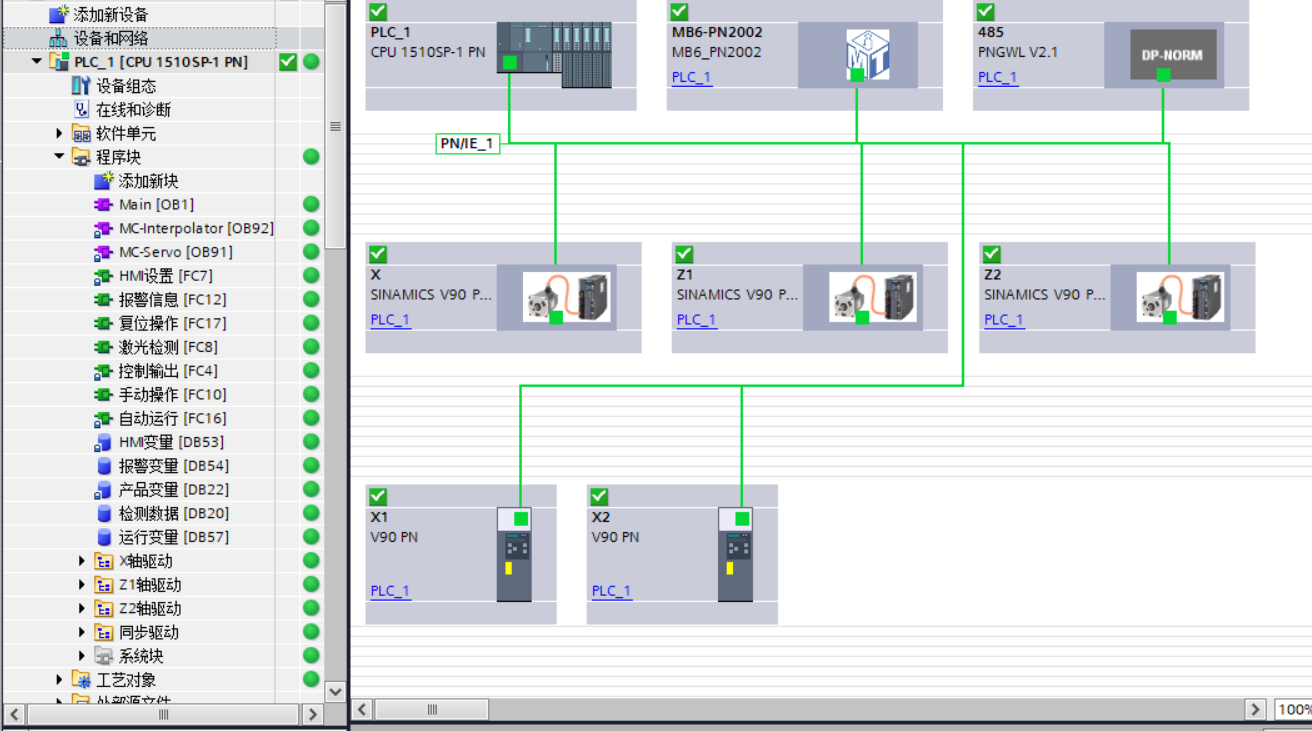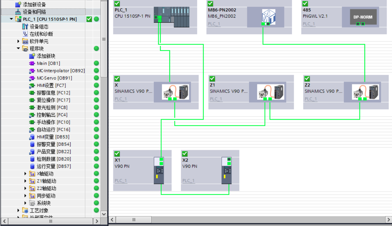2016年我在工作中接觸武藏運動平臺很感興趣,領導看我沒事讓我寫一個武藏類似的系統,他當時可能想讓我走,我花了一個月寫出來。接著就有多軸大項目,做這個大項目缺人手我也沒什么思路,看到這么多軸我就想能不能把武藏平臺三個軸當作一個工位來寫,把多軸的系統簡化成很多工位同時運行,一個工位控制1-3個軸。想法覺得行得通,在寫的過程中按照工藝把幾個軸編程一個工位,有些軸是全局運行的就單獨建程序塊,后面程序寫好調試完也能用。經過8到9年不斷做項目,慢慢完善這種寫法,系統越來越復雜,后面就越來越簡單,只要分析指令問題,程序反而越寫越小,程序在數據內存。