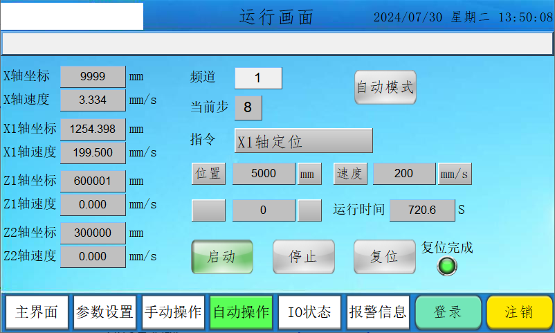可以同時并行運行1到100個頻道,看內存分配多少頻道沒上限,順序和并行都沒問題的用等待IN指令可以回到主程序。1個頻道運行程序很小只有3行,數據存儲可以寫滿PLC內存。每個工位3個到10個軸可以同時運行很多工位,多工位并行運行能控制10-100個軸,工位之間信息可以交互串聯,頻道之間有 頻道調用指令 和 跳轉指令 ,頻道與頻道之間可以跳來跳去。看你理解和掌握的程度。我一般能用這種框架控制100來個軸,沒有上限軸數的,只看PLC數據內存夠不夠。