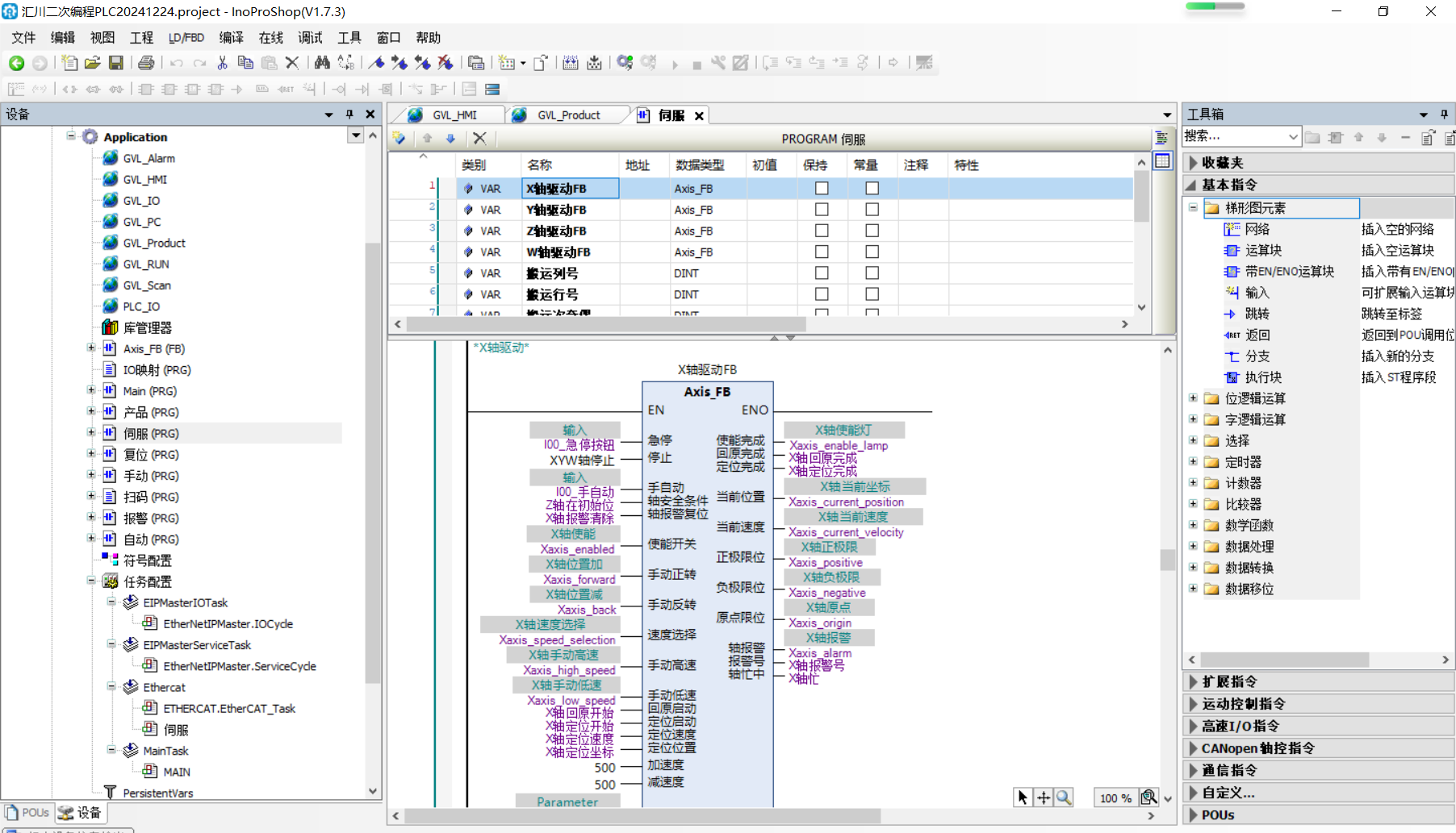 最近比較閑,想用匯川AC系列PLC寫多工位二次編程,問供應(yīng)商AC810沒庫(kù)存只剩AC802,買了一套匯川AC802帶UPS電源和一些伺服,準(zhǔn)備在PLC里寫100工位二次編程,后面再移值到AC810PLC里控制200多軸,每個(gè)工位3個(gè)插補(bǔ)軸(XYZ)和一些氣缸變頻器(也可以加幾個(gè)單軸),每個(gè)工位占用5個(gè)程序頻道,每個(gè)程序頻道200步。工位使用可以在觸摸屏上勾選,想用50個(gè)工位就勾選50個(gè)工位。指令庫(kù)里寫 輸入指令,輸出指令,氣缸指令,變頻器指令,延時(shí)指令,回原指令,跳轉(zhuǎn)指令,頻道調(diào)用指令,重復(fù)指令,矩陣指令,單軸相對(duì)運(yùn)行指令,單軸絕對(duì)運(yùn)行指令,平面直線插補(bǔ)指令(XY),平面圓插補(bǔ)指令(XY),空間直線插補(bǔ)指令(XYZ),空間圓插補(bǔ)指令(XYZ)(螺旋指令和CNC指令看了手冊(cè)好像有點(diǎn)問題,后面再測(cè)試分析,先實(shí)現(xiàn)功能)。匯川AC802像一臺(tái)電腦,內(nèi)存4G,硬盤128G,這樣的配置內(nèi)存很大很適合寫二次編程,寫完100工位的數(shù)據(jù)存儲(chǔ)數(shù)據(jù)庫(kù),還有很多內(nèi)存,寫起來很舒服。現(xiàn)在在寫伺服底層和指令庫(kù),估計(jì)還要寫一段時(shí)間,每天寫一點(diǎn)不能把自己忙的太累了,按照基恩士的多工位二次編程方式寫匯川程序,Codesys上手就會(huì)用,和西門子基恩士編程類似。