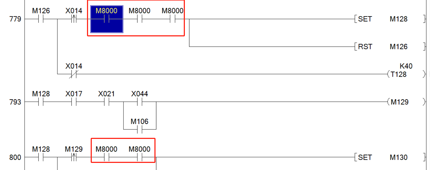 這段程序為哈用好多個M8000?直接一個不行嗎?不太懂,哪位大佬幫忙解析下,謝謝!