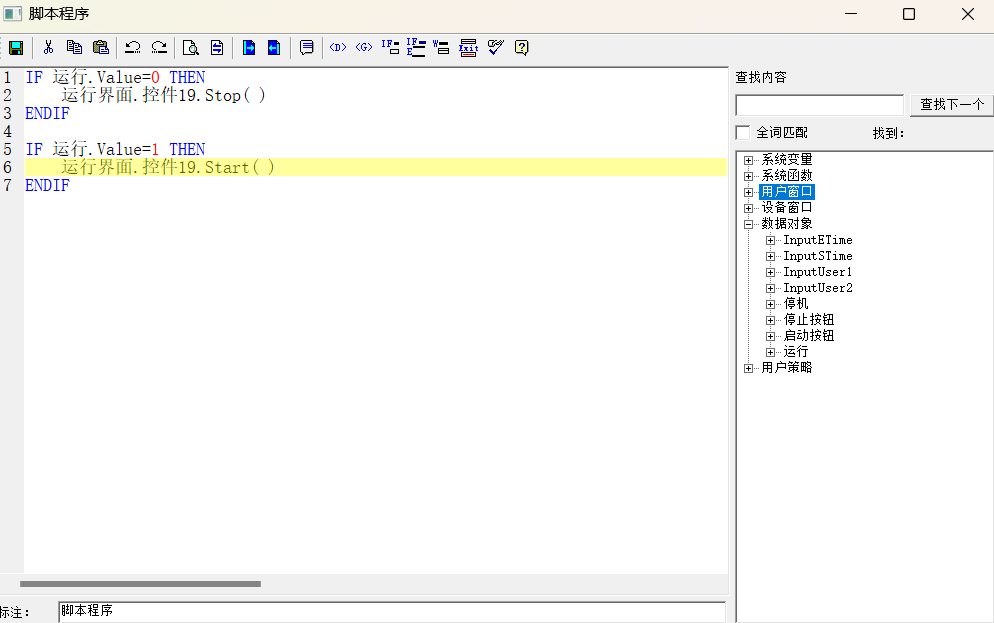 我寫了一個起保停程序,想要的效果是,當運行=0的時候,GIF的動圖停止播放,當運行=1的時候,GIF的動圖開始播放。下圖是我寫的這個腳本,腳本沒有問題但是達不到我要的效果,就是前面的那個效果,第一次寫這個MCGS觸摸屏的腳步不知道哪里錯了,求大佬指點一下,謝謝啦!