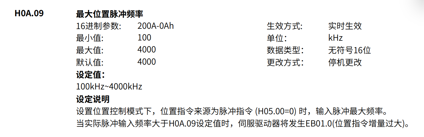 用一臺(tái)眾為星控制3臺(tái)SV630P匯川電機(jī),當(dāng)速度設(shè)定高時(shí),會(huì)出現(xiàn)EB01.0報(bào)警,但是伺服的速度沒(méi)有達(dá)到最大。速度設(shè)置慢點(diǎn)就不會(huì)報(bào)警,速度慢節(jié)拍達(dá)不到要求。