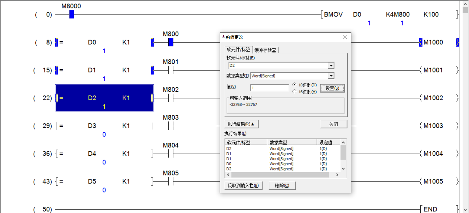 把D的值放到對應的M點,寄存器的數值只有0和1:
