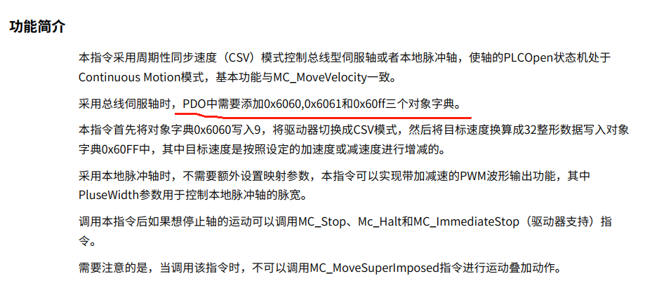 本指令采用CSV模式控制總線型伺服軸或者本地脈沖軸,使軸處于連續(xù)運(yùn)動(dòng)模式。